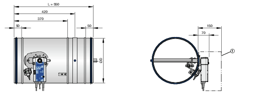 Longueur de la gaine 495 mm ou 550 mm, pour le raccordement à des gaines en matériaux incombustibles ou combustibles. Déclenchement thermique ou thermoélectrique à 72 °C ou 95 °C (systèmes de ventilation à air chaud).