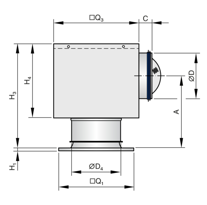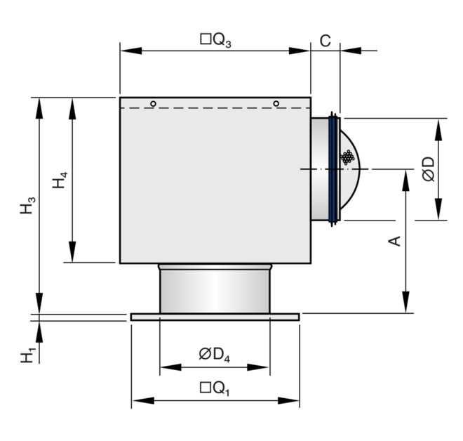 Exemple de commande : RFD–Q–D–A–M–L/200/P1-RAL 9016
