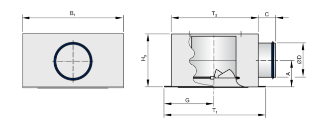 Les diffuseurs plafonniers à caisson de raccordement universel, le clapet et la prise de pression (modèle MN) permettent d'équilibrer le débit même lorsque la façade est en place.