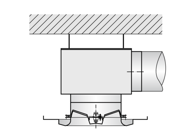 Position de la collerette de raccordement, définie par la distance entre la ligne centrale de la collerette de raccordement et le bord inférieur du plafond