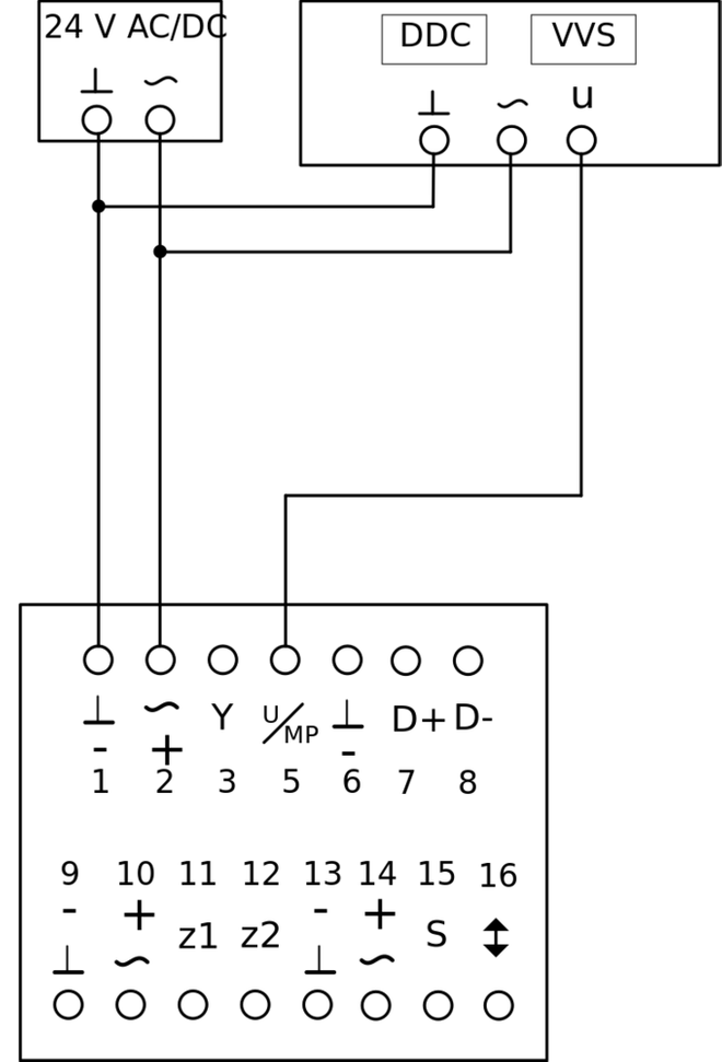 | Raccordement de bus | Modbus RTU*, BACnet MS/TP, MP-Bus |