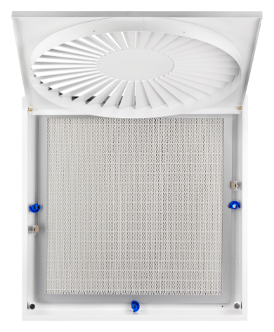 3 - Pour un accès direct au système de régulation / registre de fermeture en cas de plafond fermé, un registre de fermeture étanche ou un module de régulation peut être associé au caisson terminal plafonnier.