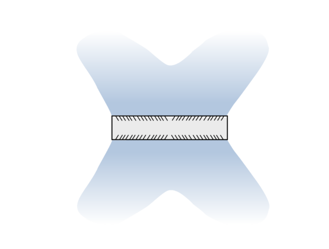 L’air est soufflé dans l’espace depuis le diffuseur à une vitesse comprise entre 2 et 5 m/s. Le jet d’air en résultant se mélange à l’air ambiant et ventile l’intégralité de l’espace. Les systèmes de soufflage par mélange assurent, de manière standard, une diffusion de température et une qualité d’air uniformes au sein de l’espace. La vitesse initialement élevée du jet d'air turbulent décroît rapidement en raison des forts taux d'induction des systèmes de soufflage par mélange.